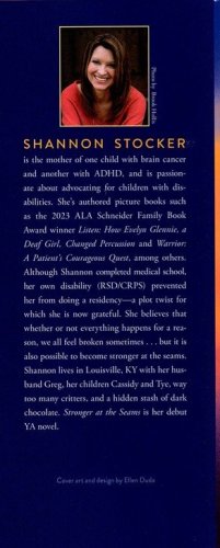 Is a contemporary fiction novel for readers 12 and up and adult fans of YA Comes from Shannon Stocker, the winner of the 2023 Schneider Award for Listen: How Evelyn Glennie, a Deaf Girl, Changed Percussion and an advocate for children with disabilities and chronic disease Is a powerful coming-of-age story about family, friendship, and self-advocacy