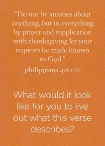 Lay out the cards for the week, questions facing up. Allow each woman to choose her favorite card. Lay out the Scripture cards for that week. Refer to them as needed for help processing as you share.  Take turns having each woman ask the question on her card. Allow time for anyone who wants to share or respond.