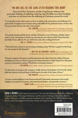 Suffering is an undeniable aspect of life. In this book, renowned New Testament scholar Craig Keener delves into the perennial question of hardship, offering a biblical understanding of suffering and resilience. Balancing insightful exposition of Scripture with compelling stories of Christians worldwide who have faced trials for their faith, Keener reveals how believers can endure by the power of the Holy Spirit.