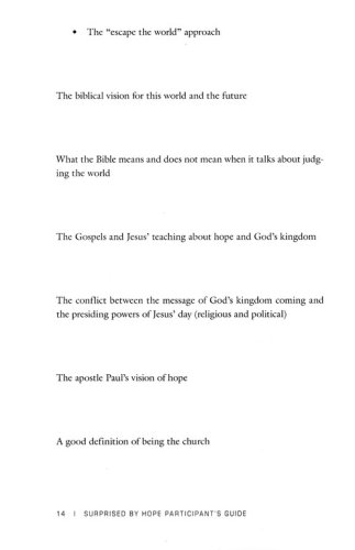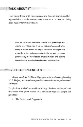 Filled with discussion questions, thoughts for reflection, and ideas for personal application, this study guide will help you get the most out of each session as you explore such questions as What is heaven really like? Is our main duty as Christians simply to help non-Christians get there? What hope does the gospel hold for this present life? In what ways does God intend for us to experience that hope personally and spread its healing power to the world around us?