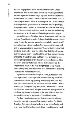 Whether you are a new or seasoned Christian, insights shared in Surrender will prompt you to look deeper into your life motives. How do you discern if your will is interfering with God's will? How do you know if you are offering all of yourself so God can use you in ways you could never imagine? How do you humble yourself so that others can step up and serve more effectively?
