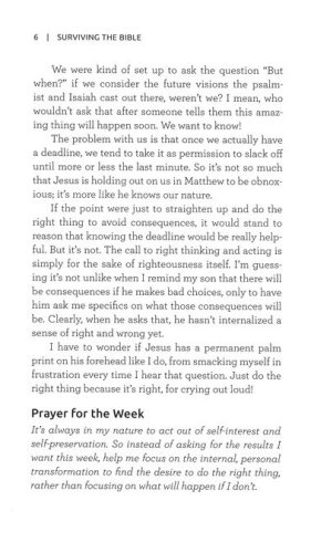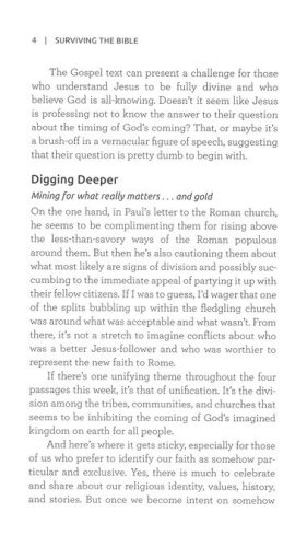 Start anywhere. Set it down and come back to it. There's no "wrong way" to use Surviving the Bible. Engage ancient texts in new ways that make sense, here and now, maybe for the first time. Any way you use it, it's sure to challenge and inspire.