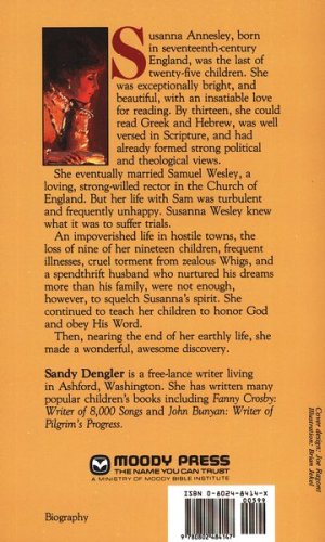 This is the story of Susanna Wesley, mother of Charles and John Wesley, who were founders of the Methodist Church. She was a  bright, beautiful woman whose life was turbulent but whose faith never wavered.