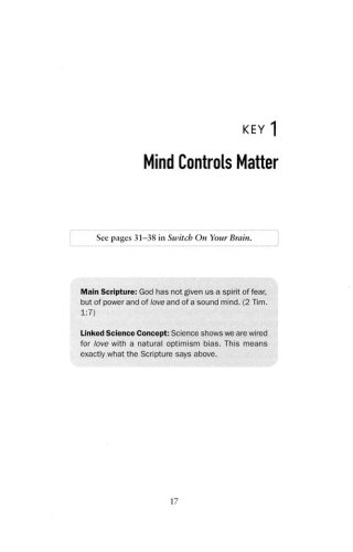 Each of the keys in the Switch On Your Brain Workbook pairs science with Scripture, asking penetrating personal questions in order to understand the impact of our thought lives on our brains, bodies, and lifestyles. Discussion sections will help you see vital connections between our body of scientific knowledge and the Bible. Recommended reading lists are included for those who wish to dig deeper.