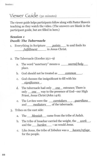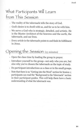 More flexibility and options for use. Implementing a study or enhancing a current study of the Tabernacle has never been easier! Although some Tabernacle DVDs provide optional participant guides, The Tabernacle Experience's DVD provides not only participant guides but an optional leaders guide as well—which means you do not have to be an expert to lead this study. With these supplemental materials you have the options to dive even deeper into this topic of study. Here's an Overview of Each Session: Session 1 Dwell: The Tabernacle
