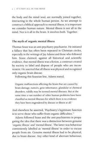 This book offers a biblical framework for understanding mental illness and helping the mentally ill. It synthesises the relevant biblical material with our scientific understanding of mental illness and equips the reader to deal wisely, intelligently, and compassionately with issues of mental health in churches and the community. It helps us discern between bad behaviour, which is a result of illness, and that which results from sin.