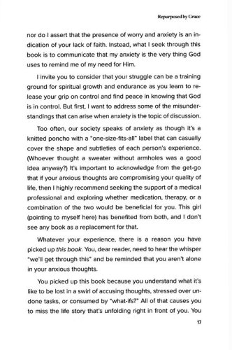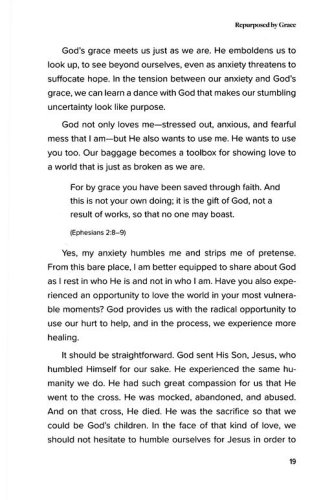 Author Lindsay Hausch is no stranger to real-life struggles with anxious thoughts. She knows that, even with the power of God's grace, overcoming anxious thoughts is not as simple of praying enough or having enough faith. Instead, the struggle can be a training ground for spiritual growth. God's love for you is present. So take heart, He promises that His grace is sufficient.