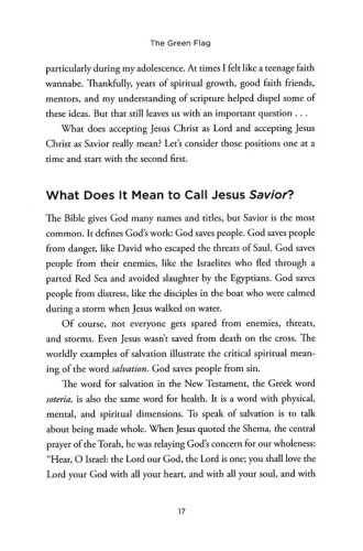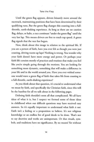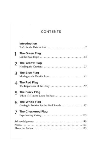 Green flag (start): How do we start our journey of faith?Yellow flag (caution): The decisions we make can sometimes put us in danger. How do we learn to heed God's caution?Red flag (delay): Finishing well involves pit stops. How does God help us get the most out of these breaks?Blue flag (yield): Each of us may run our own race, but we also need to respect others. How does God help us focus on others' needs?Black flag (disqualification): What happens when our own violations take us out of the race, and how does God help us get back in?White flag (final lap): As we head toward the finish line, how do we steer according to God's will?Checkered flag (victory): If we persevere-navigating the hazards, managing the pit stops-then victory is ours. But how does God want us to experience victory?