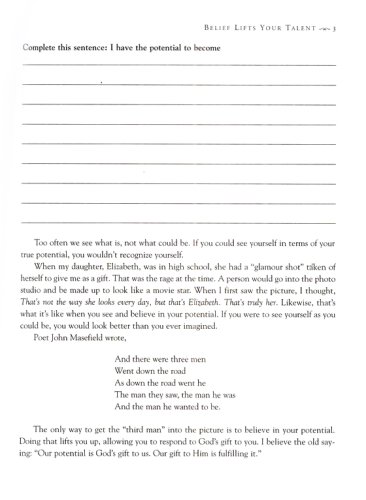 Belief lifts your talent.Initiative activates your talent.Focus directs your talent.Preparation positions your talent.Practice sharpens your talent.Perseverance sustains your talent.Character protects your talent. . . . and more!!