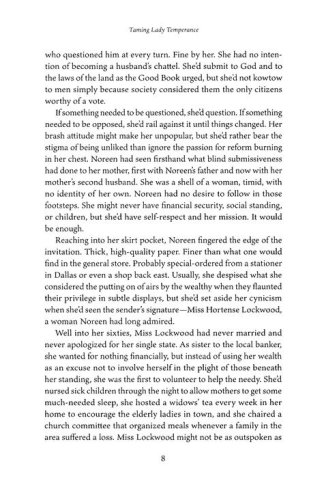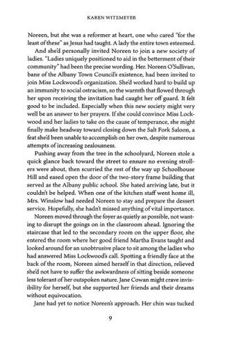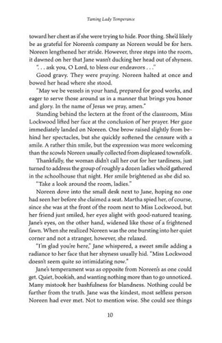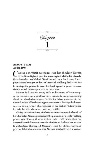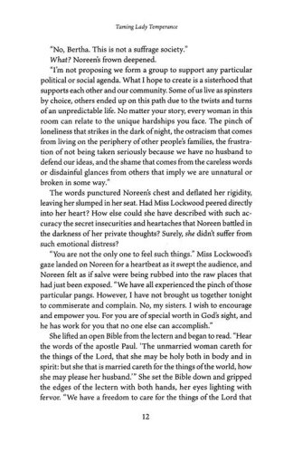 Noreen O'Sullivan is an enthusiastic member of the Woman's Christian Temperance Union and believes herself called to defend the cause of prohibition. When she's invited to join the Secret Society of Spinsters, Noreen jumps at the chance to rally others to her movement and shut down the local saloon for good. However, her passionate campaigning often puts her at odds with the men around her–including the local deputy.