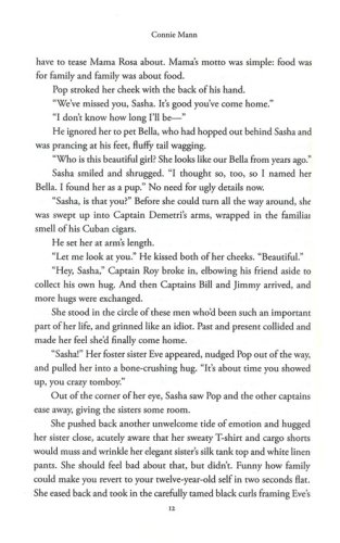 Orphaned as a child in Russia, boat captain Sasha Petrov has spent most of her life adrift, anchored by only her loving foster family. So when they beg her to return to the family marina in Safe Harbor, Florida, for Mama Rosa’s sixtieth birthday, Sasha complies, hoping to put the past behind her. But Mama Rosa has other plans: she wants her three foster daughters to find Tony, the biological son who disappeared twenty years earlier.