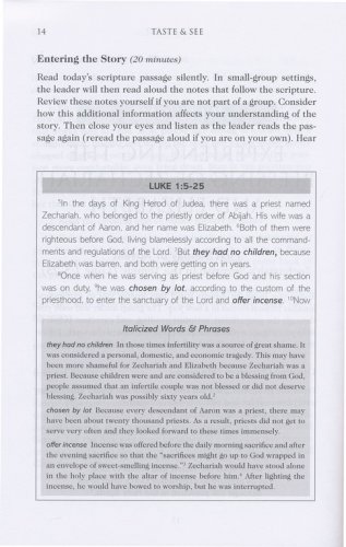 Jan Johnson offers an innovative Advent smallgroup study built around a careful contextual reading of scripture combined with the imaginative reading approach introduced by St. Ignatius. The title "Taste and See” hints at how readers are invited to experience the stories of the season with their senses. Drawing on that experience of scripture, participants then consider how these stories speak to their own lives.