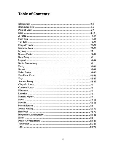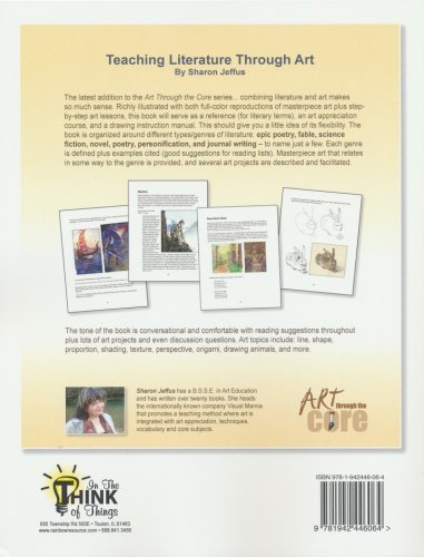 Visual Manna's Teaching Literature Through Art features full-color reproductions of classic artwork along with art lessons that align with classic literature. Organized around different literary genres –epic fable, poetry, science fiction, personification, novels, and journal writing– each genre is defined with examples of works within the genre cited. A masterpiece that relates to the genre is featured with multiple art projects. Art concepts covered include line, shape, proportion, shading, texture, perspective, origami, drawing animals, and more through conversational, open-ended assignments.