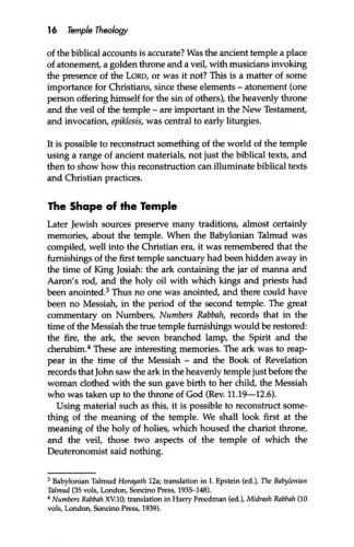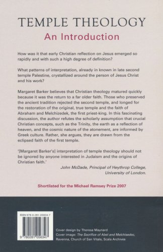 How was it early Christian reflection on Jesus emerged so rapidly and with such a high degree of definition? What patterns of interpretation, already in known in late second temple Palestine, crystallized around the person of Jesus Christ and his work? Margaret Barker believes that Christian theology matured quickly because it was the return to a far older faith. Those who perserved the ancient tradition rejected the second temple, and longed for the restoration of the original, true temple and the faith of Abraham and Melchizedek, the first priest-king. In this fascinating discussion, the author refutes the scholarly assumption that crucial Christian concepts, such as the Trinty, the earth as a reflection of heaven, and the cosmic nature of the atonement, are informed by Greek culture. Rather, she argues, they are drawn from the eclipsed faith of the first temple. ' Margaret Barker's] interpretation of temple theology should not be ignored by anyone in Judaism and the origins of Christian faith.' John McDade, Principal of Heythrop College, University of London.