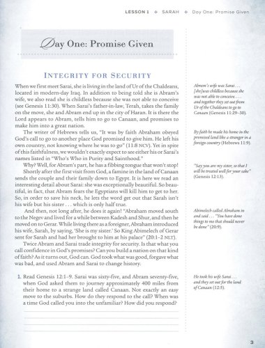 5 Daily in-depth Bible studies to help you explore the stories in Scripture  Daily points to remember to help you summarize the key points  Daily prayers to help you focus your thoughts and move into your quiet time  Weekly memory verses to help you hide God's word in your heart  Additional notes to help you lead a group through the study