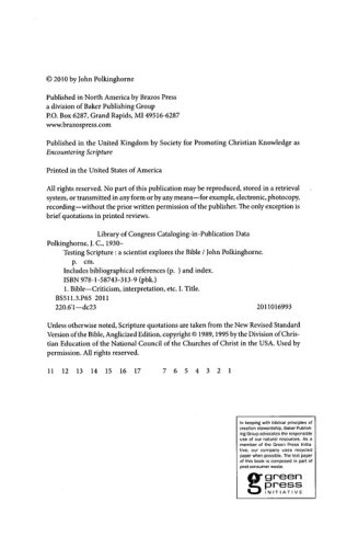 Scientist and theologian John Polkinghorne is one of the world's leading authorities on issues of science and faith. In this compelling work, he provides a fresh, honest look at key themes of the Bible from an analytical and rational perspective, offering a series of insights that have helped him in his own engagement with the Bible. Polkinghorne tackles the questions a modern Western thinker might bring to the Bible, including issues of Scripture and authority, contradiction and ambiguity, and the creation and fall. He also addresses theological challenges of the Old Testament, the Gospels, and the writings of Paul. "I have written this little book in the hope that it will be helpful to those who are seeking a careful and thoughtful engagement with the Bible in their quest for a truthful understanding of the ways of God and the nature of spiritual reality," writes Polkinghorne. His nuanced approach will be appreciated by any reader with an open and inquiring mind who is interested in the intersection between science and Scripture.