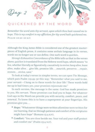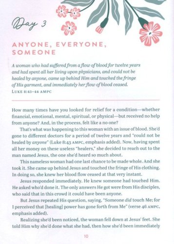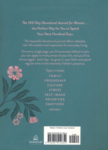 The 100-Day Devotional Journal for Women offers relatable, real-life wisdom and inspiration for everyday living. You'll encounter page after page of biblical truths you can apply to every area of your life. With topics like Family, Friendship, Culture, Stress, Self-Image, Priorities, Emotions, and more, these devotions will encourage you to grow in your faith and spend regular time in the heavenly Father's presence. Each devotional reading is complemented by a brief scripture selection and short prayer-starter. The 100-Day Devotional Journal for Women is the perfect place for you to spend your next hundred days!