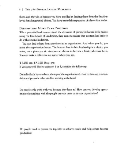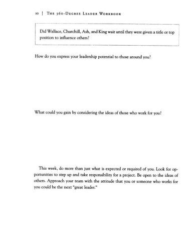 In The 360 Degree Leader Workbook, Maxwell addresses that very question and takes the discussion even further. You don't have to be the main leader, asserts Maxwell, to make significant impact in your organization. Good leaders are not only capable of leading their followers but are also adept at leading their superiors and their peers.