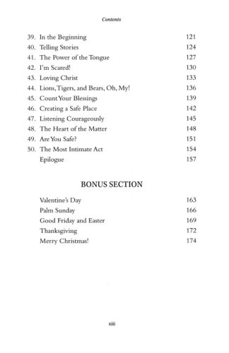The 50 Fridays Marriage Challenge is a fun book specifically designed to spark open and honest conversation between partners at any stage of married life. Each short chapter includes an engaging question, a brief message, an encouraging quote, a Bible scripture, and a prayer. The short messages bring hope to rocky marriages by providing a safe, gentle space for discussing important matters, such as communication, conflict, in-laws, finances, children, sex, and much more.