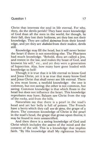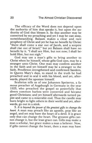 To those who looked to some external act for confirmation of a regenerate heart, the Puritans pointed to proper motives as well as proper conduct. To those who looked merely to their orthodox beliefs, the Puritans pointed out that the demons are orthodox in their creeds, but not in their conduct. Ever mindful not to stir up unnecessary doubts in weak believers, the Puritans, nevertheless, felt it imperative to awaken the carnal hypocrite out of his undeserved security.