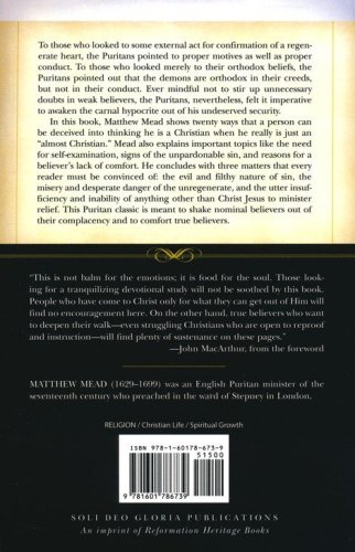 In this book, Matthew Mead shows twenty ways that a person can be deceived into thinking he is a Christian when he really is just an “almost Christian.” Mead also explains important topics like the need for self-examination, signs of the unpardonable sin, and reasons for a believer’s lack of comfort. He concludes with three matters that every reader must be convinced of: the evil and filthy nature of sin, the misery and desperate danger of the unregenerate, and the utter insufficiency and inability of anything other than Christ Jesus to minister relief. This Puritan classic is meant to shake nominal believers out of their complacency and to comfort true believers.