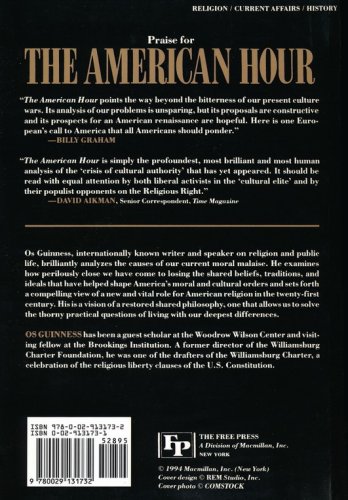 An internationally known writer and speaker on religion and public life brilliantly analyzes the causes of our current moral malaise. Os Guinness examines how perilously close we have come to losing the shared beliefs, traditions, and ideals that have helped shape America and sets forth a compelling view of a new role for religion and faith.