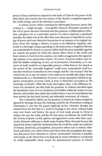 The book begins by tracing the shifting use and nature of metaphysics in the thought of Kant, Hegel, Nietzsche, Heidegger, Lyotard, Derrida, Deleuze, Nancy, Levinas, and others. Hart pays special attention to Nietzsche's famous narrative of the "will to power" — a narrative largely adopted by the world today — and he offers an engaging revision (though not rejection) of the genealogy of nihilism, thereby highlighting the significant "interruption" that Christian thought introduced into the history of metaphysics.