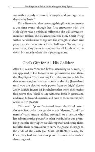 Who is the Holy Spirit? How can believers experience God's presence? How does God work in, with, and through His followers? Many Christians have very basic questions about the Holy Spirit, the third Person of the Trinity. In The Beginner's Guide to Receiving the Holy Spirit, they will find answers to their questions and learn how to access the power and presence of God promised to all His children. Readers will discover who the Holy Spirit is and find out how He will enable them to live the abundant life Jesus promised. Plus, once they receive the Spirit, they'll learn how to maintain a relationship with Him through a lifetime of spiritual vitality!