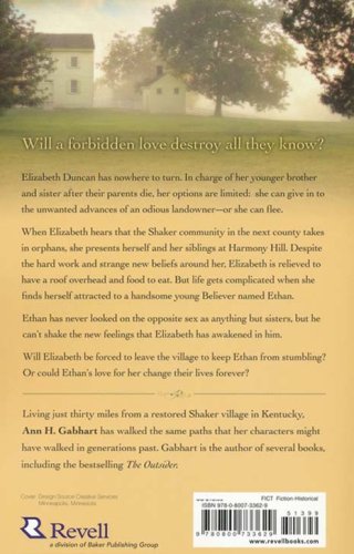 Elizabeth Duncan has nowhere to turn. In charge of her younger brother and sister after their parents die, her options are limited. When she hears that the Shaker community in the next county takes in orphans, she presents herself and her siblings at Harmony Hill. Despite the hard work and strange new beliefs around her, Elizabeth is relieved to have a roof overhead and food to eat. But when she feels a strong attachment to a handsome young Believer named Ethan, life gets complicated. Ethan has never looked on the opposite sex as anything but sisters, but he can't shake the new feelings that Elizabeth has awakened in him. Will Elizabeth be forced to leave the village to keep Ethan from stumbling? Or will Ethan's love for her change their lives forever?