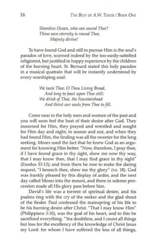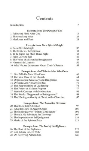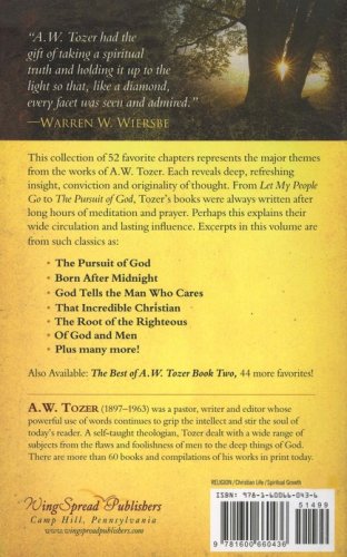 This collection of 52 favorite chapters represent the major themes from the works of A.W. Tozer. Each chapter offers what Tozer has come to be known for: incredible insight, deep conviction, and high praise of God.