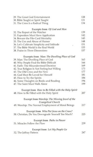 From Let My People Go to The Pursuit of God, Tozer's books were always written after long hours of meditation and prayer. Perhaps this explains their wide circulation and lasting influence.
