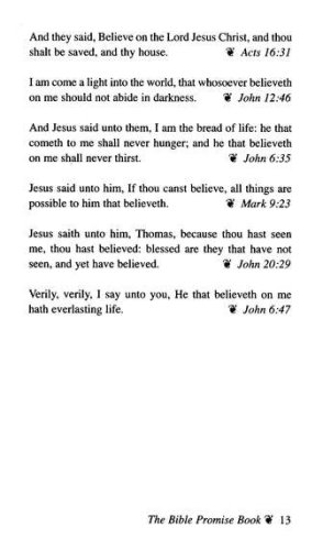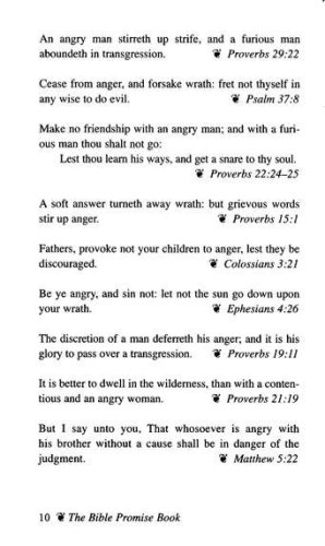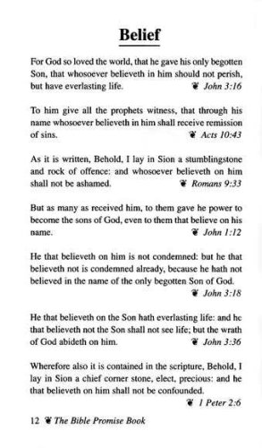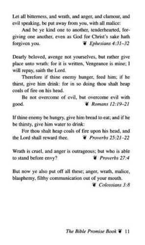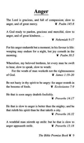 The Bible Promise Book is power for living! Topics include Anger, Belief, Charity, Death, Enemies, Faith, Guidance, Hope, Jealousy, Love, Marriage, Obedience, Peace, Righteousness, Shame, Trust and Wisdom, along with many others.