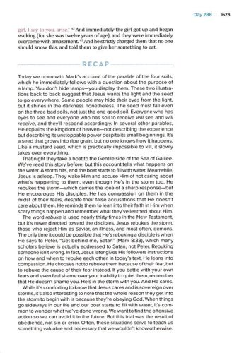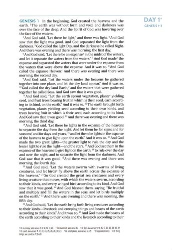 365 Scripture readings in chronological orderdaily reflections on God's character and faithfulness as revealed in Scriptureinsightful, easy-to-understand recaps that will fortify your faith each daySingle-column text, a ribbon marker, and the words of Jesus in red