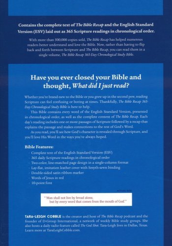 Known for its accessible, insightful studies, the bestselling The Bible Recap has helped millions know and understand God more deeply through His Word. Now conveniently set within a chronological ESV Bible for a two-in-one reading experience, this beautifully designed study Bible features: