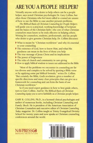 Almost anyone with a desire to help others can be a people helper, but often those Christians who feel most called to counsel are unsure of how to use the Bible to ease another person’s problems. This book will guide you to a practical, working knowledge of Scripture, the character of God, and the basics of the Christian faith—the core of what Christian counselors must know to be truly effective in helping others.