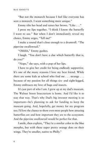 The investor meeting is a week away, but there’s a big problem: Liberty has reason to suspect there’s going to be a "buglary" of the museum’s rarest animals. But the police don’t believe her, and with Dad out of town for an insect convention, it’s up to Liberty and her friends (and her vast knowledge of bug defense mechanisms) to thwart the thieves and save the museum.