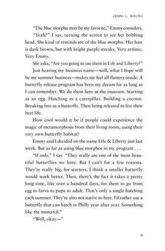 Without a mom and with her dad busy running the museum, Liberty Jacobs was practically raised by the tarantulas, leopard geckos, and rare butterflies of the Walnut Street Insectarium. She loves being the resident "Bug Girl," but unless Liberty and her dad can snag a big investor, they’ll lose the museum, their home, and the funding Liberty needs to launch her dream business: a butterfly release program called Life & Liberty.