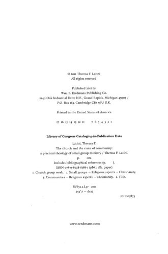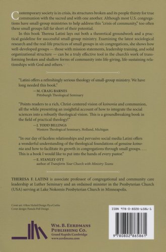 In The Church and the Crisis of Community Theresa Latini lays out both a theoretical groundwork and a practical guideline for successful small-group ministry. Examining the latest sociological research and the real-life practices of small groups in six congregations, she shows how well-developed groups — those with mission statements, leadership training, and solid organizational structure — can be a truly effective tool in the church’s work of transforming broken and shallow forms of community into life-giving, life-sustaining relationships with God and others.