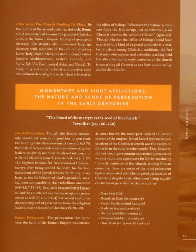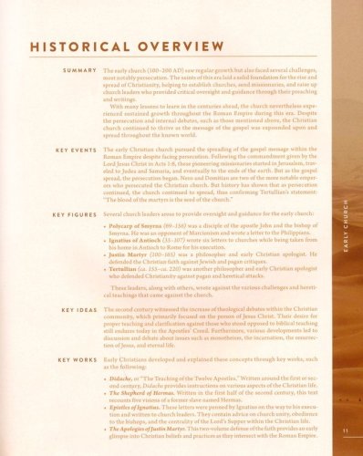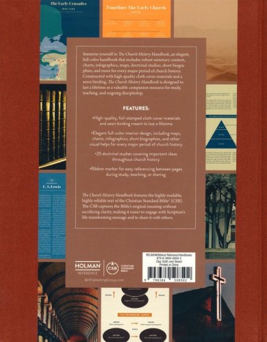 High-quality, foil-stamped cloth cover materials and sewn binding meant to last a lifetime Elegant full-color interior design, including maps, charts, infographics, short biographies, and other visual helps for every major period of church history 25 doctrinal studies covering important ideas throughout church history Ribbon marker for easy referencing between pages during study, teaching, or sharing