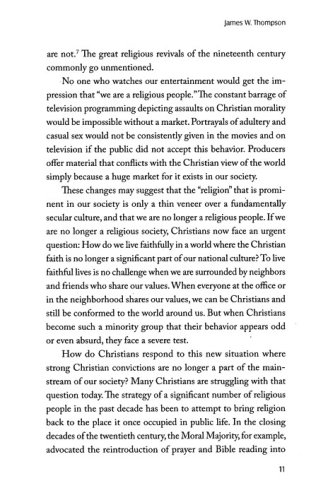 Because Christians in America now belong to a distinctly minority group, theirbehavior will increasingly be considered strange to the majority of the population.This new situation presents Christians with demanding tests-on the job, at school,and in our relationships with neighbors. We are now discovering the challenge ofbeing Christians when that is not a popular identity.