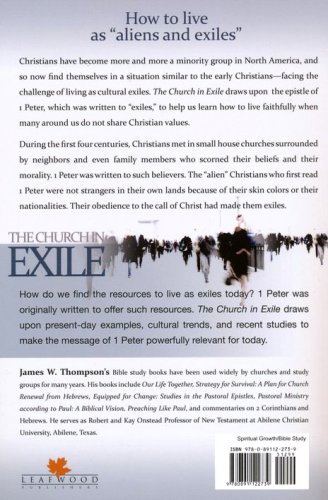 According to 1 Peter, Christians are "aliens and exiles" (2:11). The Christian life issimilar to the Israelites in Egypt or Babylon, who also did not assimilate into the largerpopulation. So today, how do we find the resources to live as exiles? The epistle of 1Peter is a sermon that was originally preached to offer such resources. THE CHURCH INEXILE applies this message to Christians in Dallas, Atlanta, Los Angeles, and Chicagoin the early twenty-first century, showing us how to live as a counterculture in a non-Christian world.