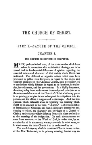 Review The Church of Christ (2 Vol.): A Treatise on the Nature, Powers, Ordinances, Discipline, and Government of the Christian Church.