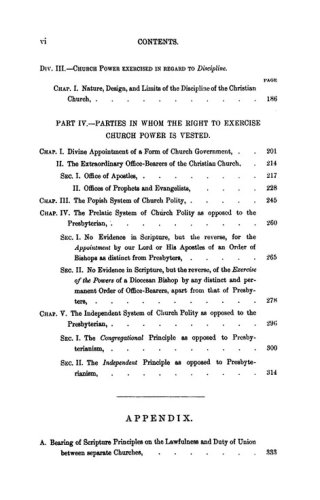 Volume two continues where volume one stopped and provides a lengthy section on the sacraments, covering the parties in whom the power to exercise church discipline is vested, examining crucial points concerning Christian liberty and examining and comparing various church forms. Nine appendices deal with a wide range of practical topics including union between churches, church/state relations, ordination, and valuable notes on the literature related to this subject.