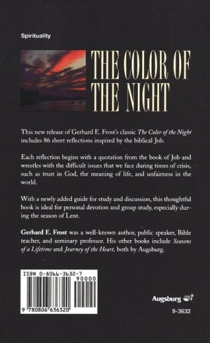 This new release of Gerhard E. Frost's classic The Color of the Night includes eighty-six short reflections inspired by the biblical Job.