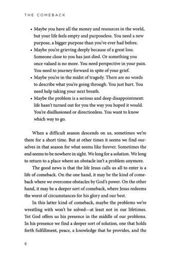 The Comeback celebrates new beginnings. It offers encouragement and perspective, and it’s for you if you feel frustrated or confused, if you’re sorrowing or in pain, if you’ve made mistakes or are grieving, if you’re disappointed or feel as though life doesn’t make sense.