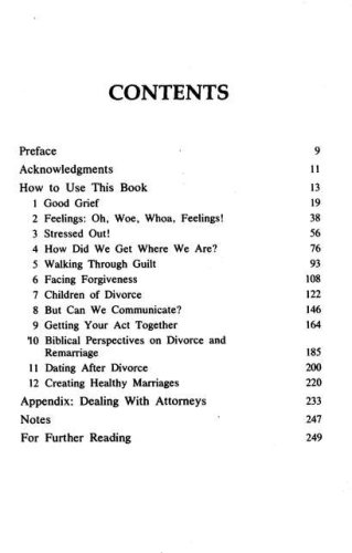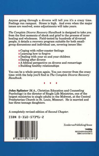 Anyone going through a divorce will tell you it's a crazy time. Feelings run rampant. Stress is high. And even when the major issues are resolved, some adjustments will take years. The Complete Divorce Recovery Handbook is designed to take you from the complete moments of shock and grief to the process of inner healing and wholeness. Field-tested by hundreds of divorced people, it details a recovery program suitable for both small-group discussions and individual use, covering issues like: – Coping with roller-coaster feelings – Learning how to forgive – Dealing with your ex and your children – Dating after divorce – A biblical perspective on divorce and remarriage – Building healthy relationships — You can be a whole person again. You can recover from the crazy time — with the help you'll find in The Complete Divorce Recovery Handbook.