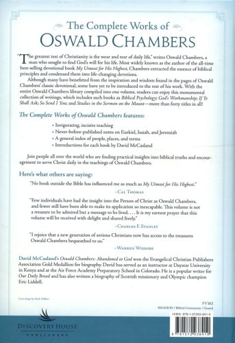 Now readers can have all of Oswald Chambers’ more than forty books, including My Utmost for His Highest and several studies printed nowhere else, in one complete volume! This elegant, hardcover book is a compilation of the spiritual legacy left behind by Oswald Chambers. Insightful notes by award-winning author and Chambers historian David McCasland add to this timeless treasure that readers will enjoy again and again.