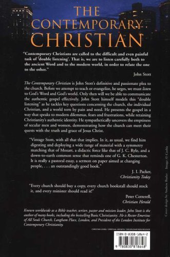 Christianity Today 1994 Critics Choice Award winner 1993 Christian Booksellers Association/Europe Book of the Year Award winner People today reject Christianity not because they think it is false but because they believe it is irrelevant. John Stott knows otherwise. In this book he challenges all of us to move with the times while standing firmly on the truth of God's Word. "To be 'contemporary' is to live in the present," Stott writes. "To be a 'contemporary Christian,' however, is to ensure that our present is enriched both by our knowledge of the past and by our expectation of the future." The challenge, then, is to be both conservative and radical–conservative in guarding God's revelation and radical in applying that revelation to the realities of the contemporary world: space travel, homelessness, genetic engineering, pollution, war, health care, gang violence, education and more. Opening our eyes to the Word and the world, Stott shows how Christianity can speak effectively and relevantly to the contemporary world. He includes chapters on the human paradox, authentic freedom, mind and emotions, evangelism and social action, the pastoral ideal and dimensions of renewal. For those familiar with Stott, The Contemporary Christian is a "must-read" book. For those who have not yet benefited from his insight and passion, The Contemporary Christian affords the perfect opportunity to get acquainted with one of the most widely read and respected Christian thinkers at work today.