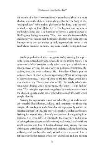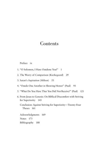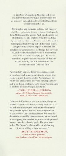 Volf also examines what the teachings of Jesus and the stories in Genesis say on the matter. Volf explains how striving to be better than others devalues our achievements, surroundings, and relationships by turning them into mere means to an empty goal. This pursuit, though widely accepted in modern life, is at odds with key Christian convictions.