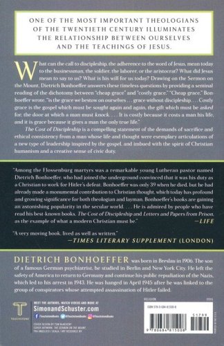 The Cost of Discipleship is a compelling statement of the demands of sacrifice and ethical consistency from a man whose life and thought were exemplary articulations of a new type of leadership inspired by the Gospel, and imbued with the spirit of Christian humanism and a creative sense of civic duty.